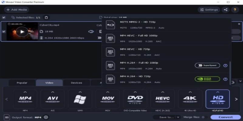 If you often need to trim clips, adjust colors, or sync subtitles during conversion, Movavi adds some editing power to the process. While it's a paid option, the free trial lets you try it out first. If you convert videos regularly and want a professional-feeling tool, it's worth considering.